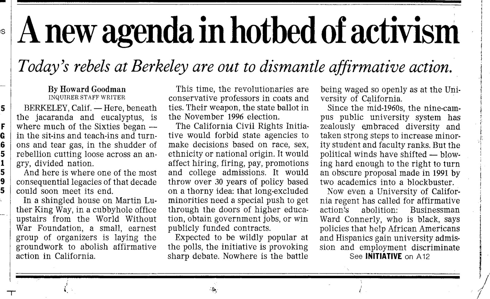 These issues played out in a convoluted way at the University of California in the 1990s. Once the center of leftist student radicalism, the university now became a spearhead to undo affirmative action.